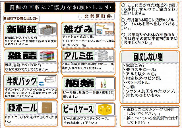 毎月第⑶木曜日は資源回収の日です