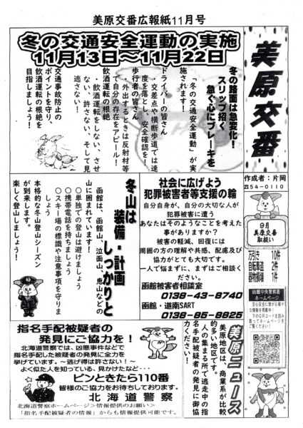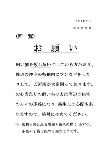 目次 町会回覧板11月町会回覧継続もの町会広報紙8月号過去の回覧板(抜粋)熱中症敬老お祝い記念品の贈呈について特定健診のお知らせ美原交番広報紙~熊出没注意!5月の回覧板町会広報紙「北美原」5月 No.95町連だよりふれあ […]